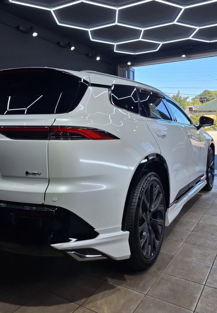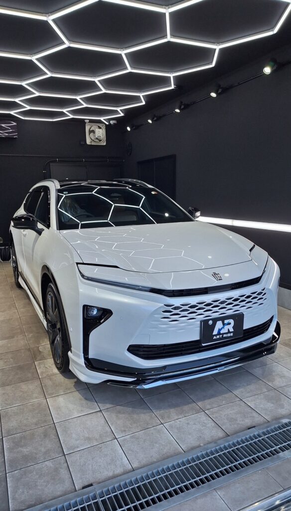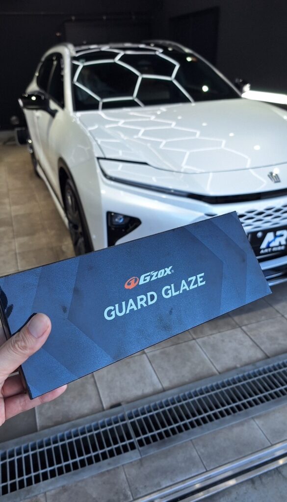 仕上げにガードグレイズを施工し、滑らかな手触りと優れた防汚性能をプラスしました。美しい艶と映り込みのある一台に仕上がりました。