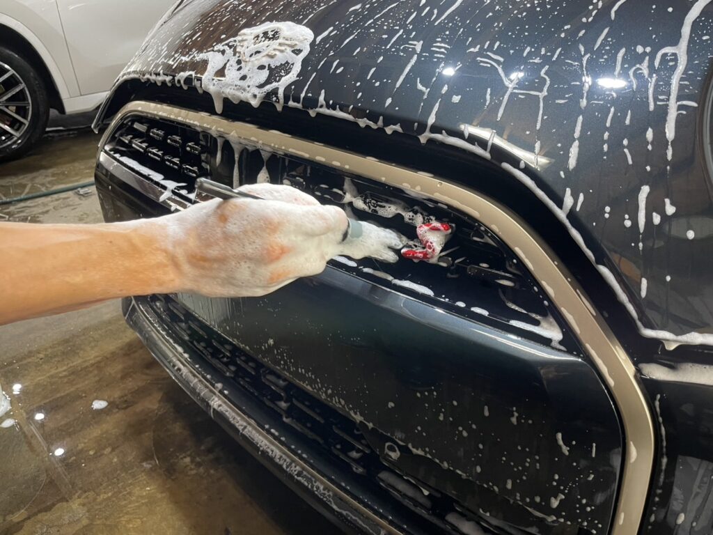 汚れを浮かしている間に、ウォッシュミットが届かない細部をソフトブラシで優しく汚れを掻き出します。