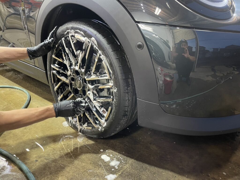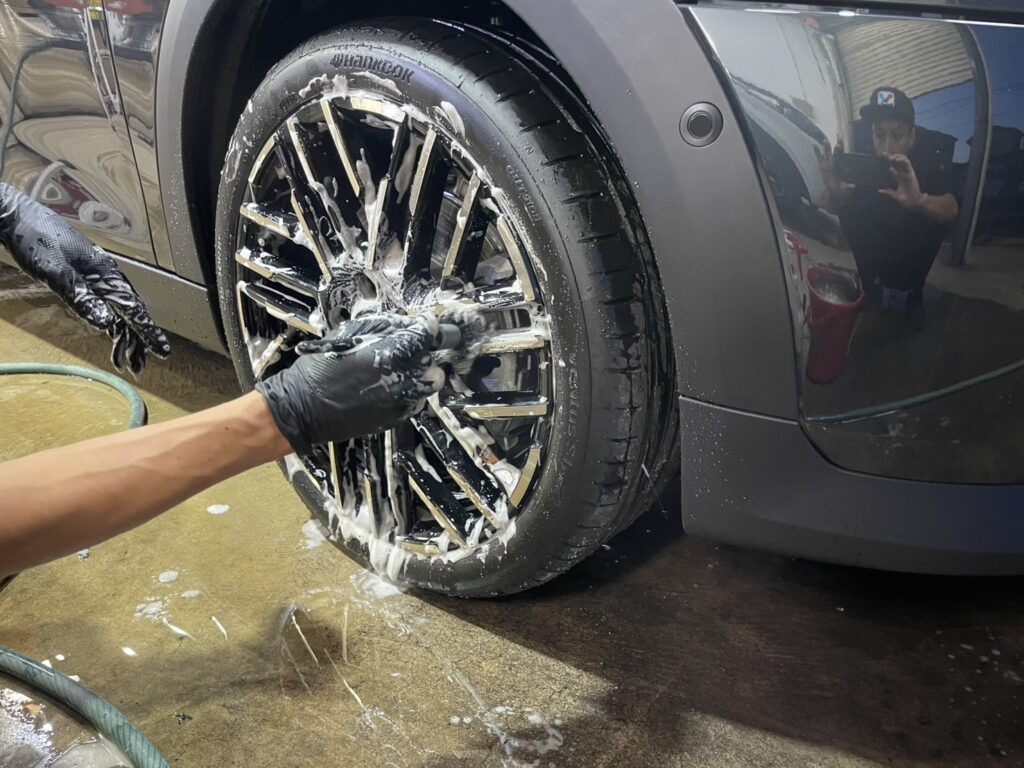 ホイールに傷が付かないようにソフトスポンジで丁寧に洗っていきます。