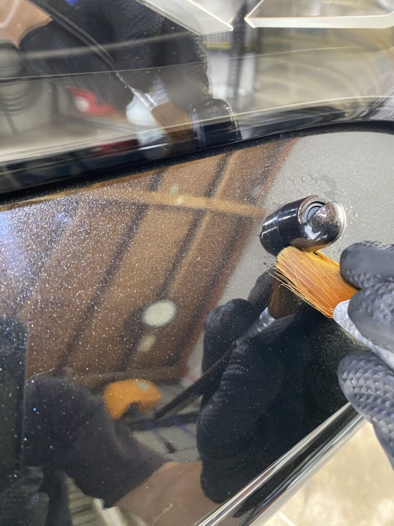 汚れを浮かしている間に、ウォッシュミットが届かない細部をソフトブラシで優しく汚れを掻き出します。