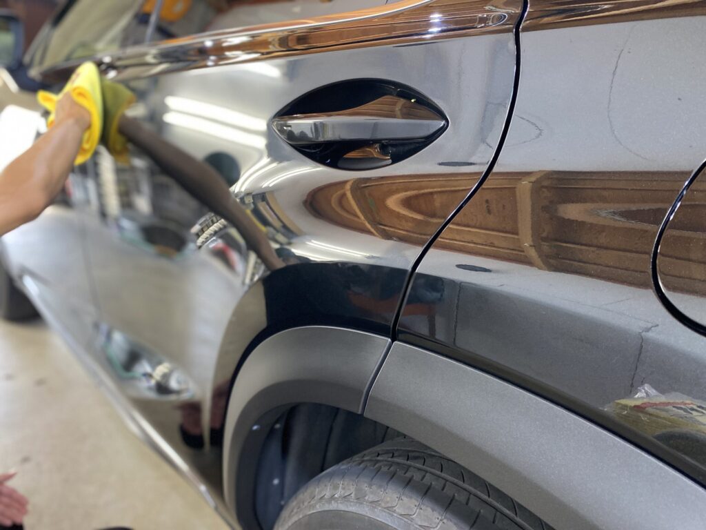 2段階の仕上げ鏡面研磨が終わりましたら、やっと外装の仕上げに取り掛かりす。今回は「CTS=COAT」のコーティングを施工します。