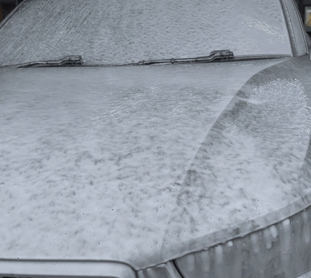 まずは3PH洗車から行います。アルカリ性、酸性、中性シャンプーを吹き掛けてお車の汚れを浮かせていきます。
