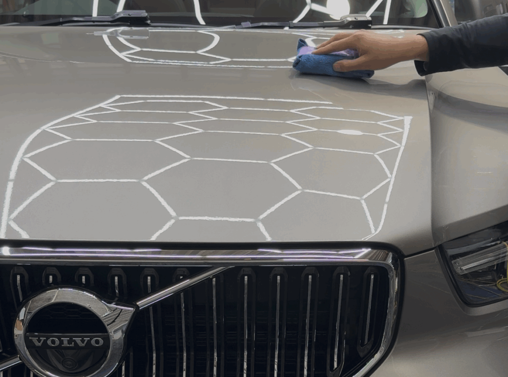 この工程を溶剤を変更しながら2回行うと、高耐久で長期にわたりお車を守ってくれる強靭な被膜が形成されます。